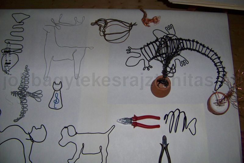 drótszobrok, használati tárgyak